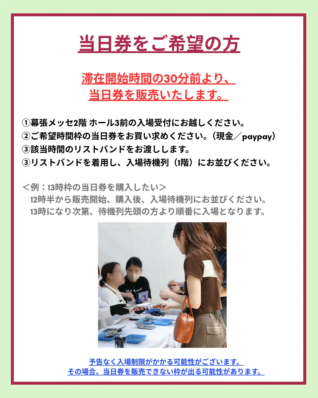 ※当日券は、入場制限により、販売を行わない枠が出る可能性がございます。