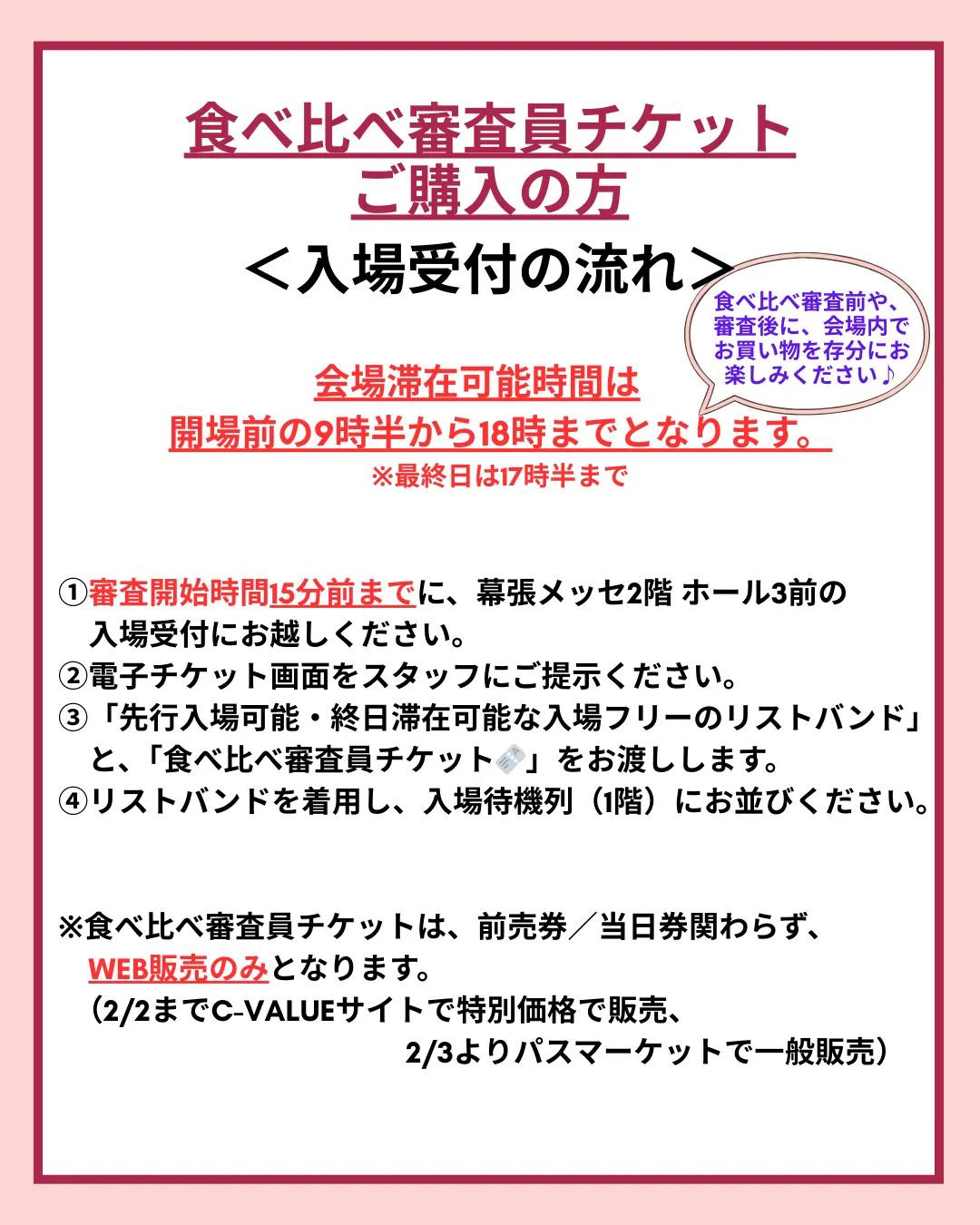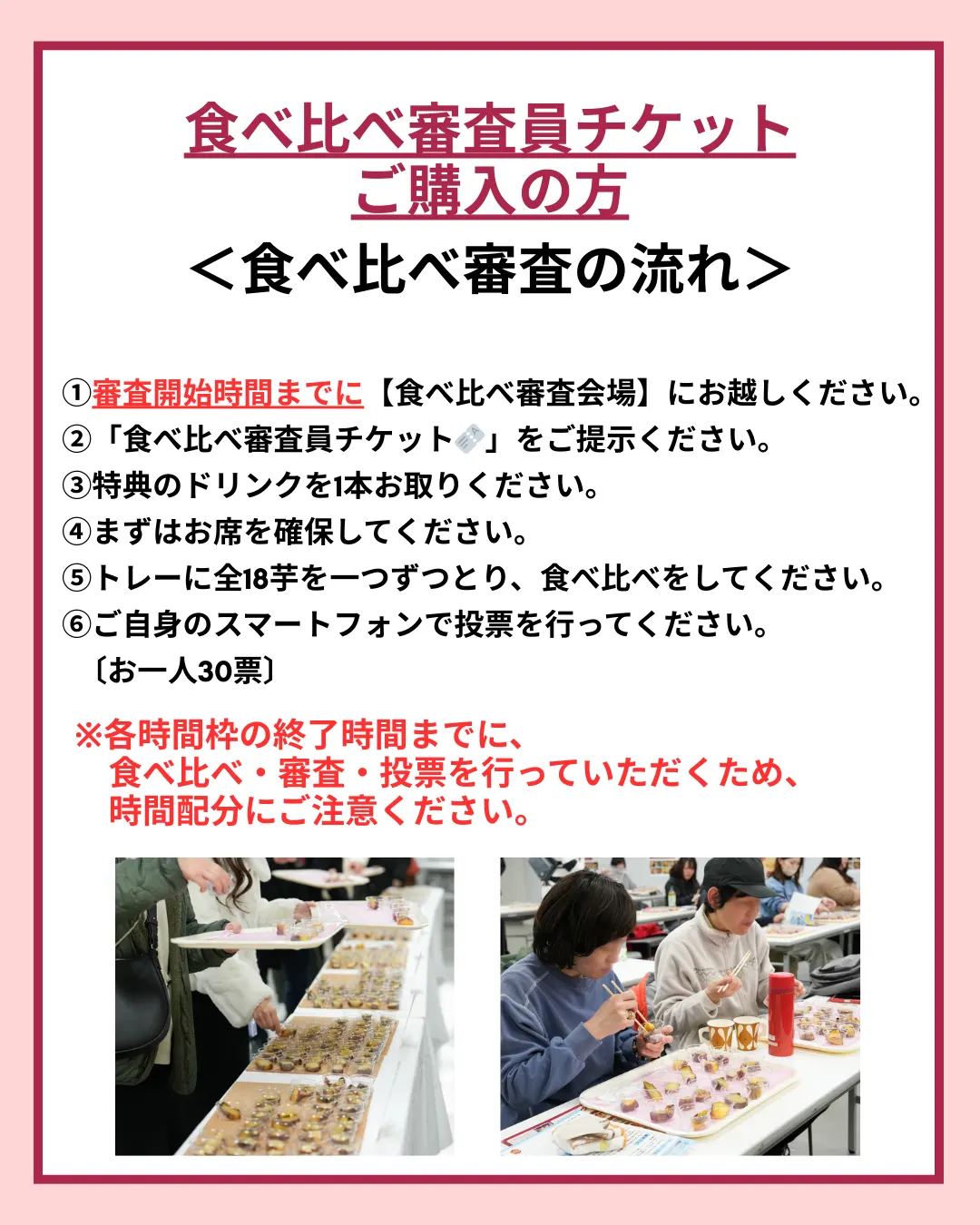 ※各時間枠の終了時間までに食べ比べ・審査・投票を行ってください。