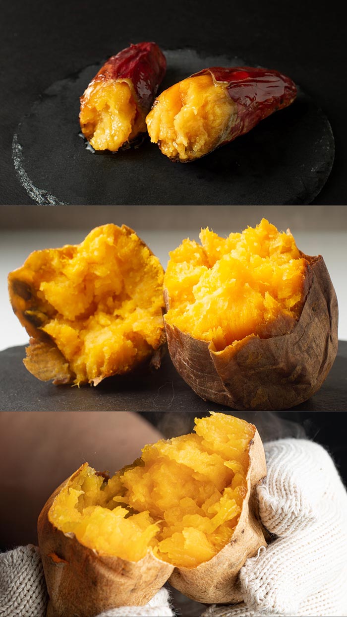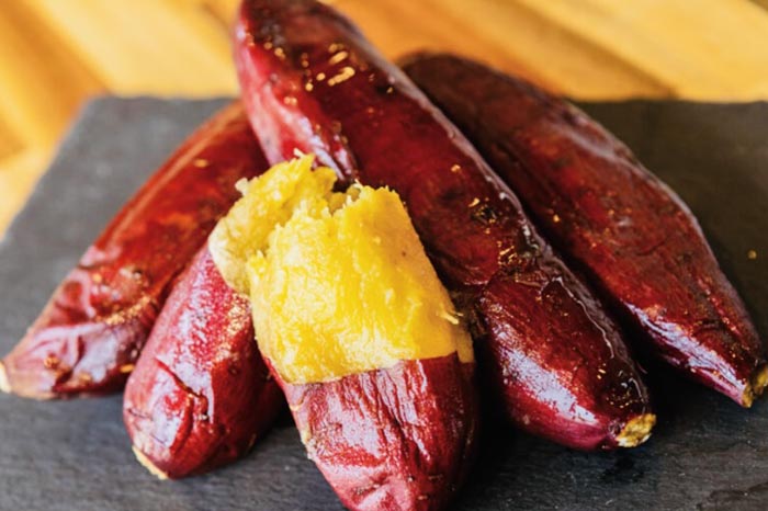 長期低温熟成させた千葉県香取市産のさつまいもを、三連のオーブンで焼き上げ甘さと香りが溢れる焼き芋