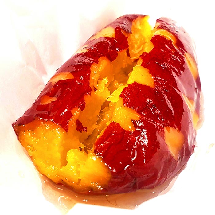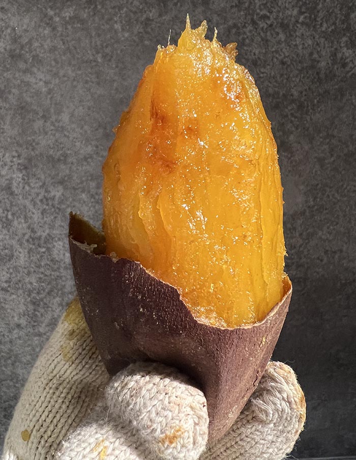 焼き芋本来の風味を十分生かしながらもねっとり甘~い蜜の味、また皮が薄くて丸ごと食べれる逸品。