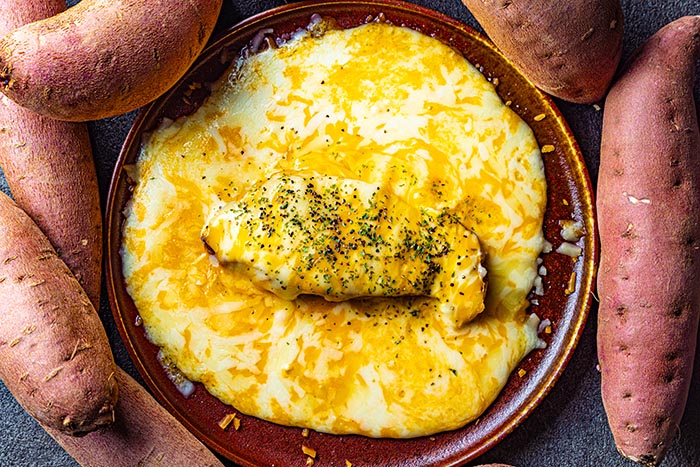 焼き芋に3種のチーズ、はちみつ、ブラックペッパーをトッピングした人気商品「元祖ハニーチーズ焼き芋」が、チーズ超増量でさらに進化。