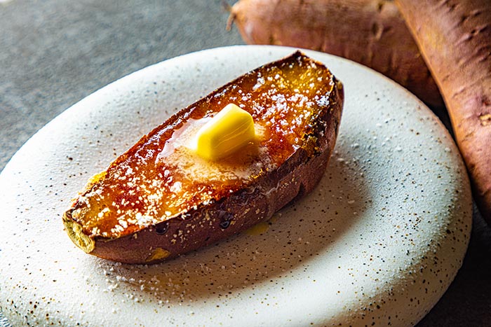 熟成やきいも。宮崎県で作るやきいもの味わいは蜜が溢れ出る濃厚な甘さと、なめらかな食感。