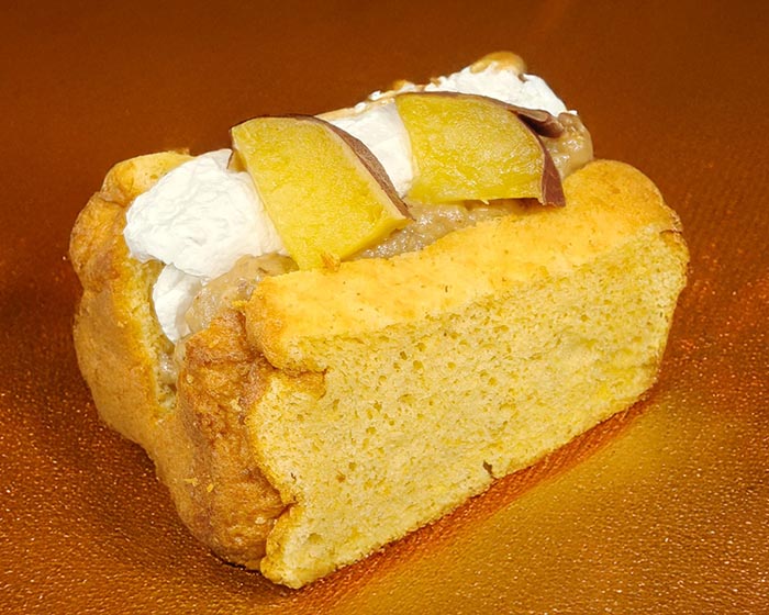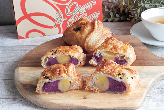 紫芋をペーストに仕上げ、栗の甘露煮を入れ焼き上げたパイは発酵バターが香りふんわりサクサク食感