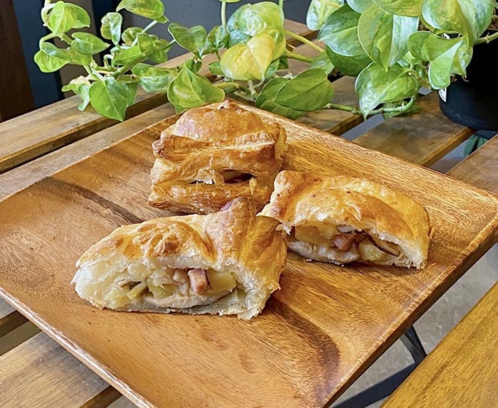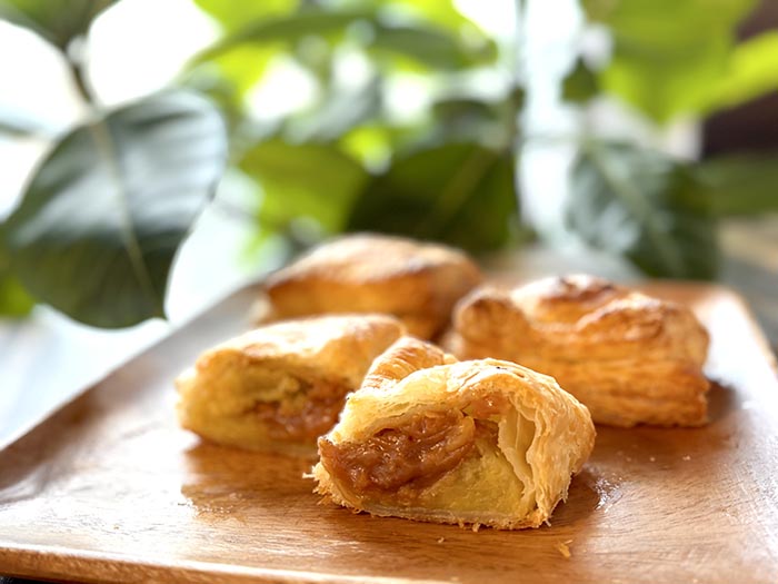 パイ専門店pie,guruguruha 発酵バターが香るふんわりサクサク食感のパイ生地と自家製さつまいもフーリングが一体となり優しく深い味わいとなります。