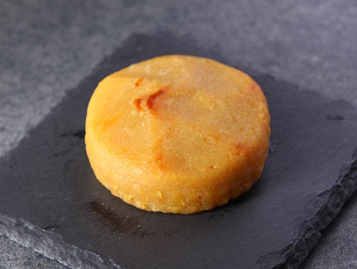 皮は白く、実は黄色で卵のような色味。まろやかな食感で、とても甘くスイートコーンを思わせる食味